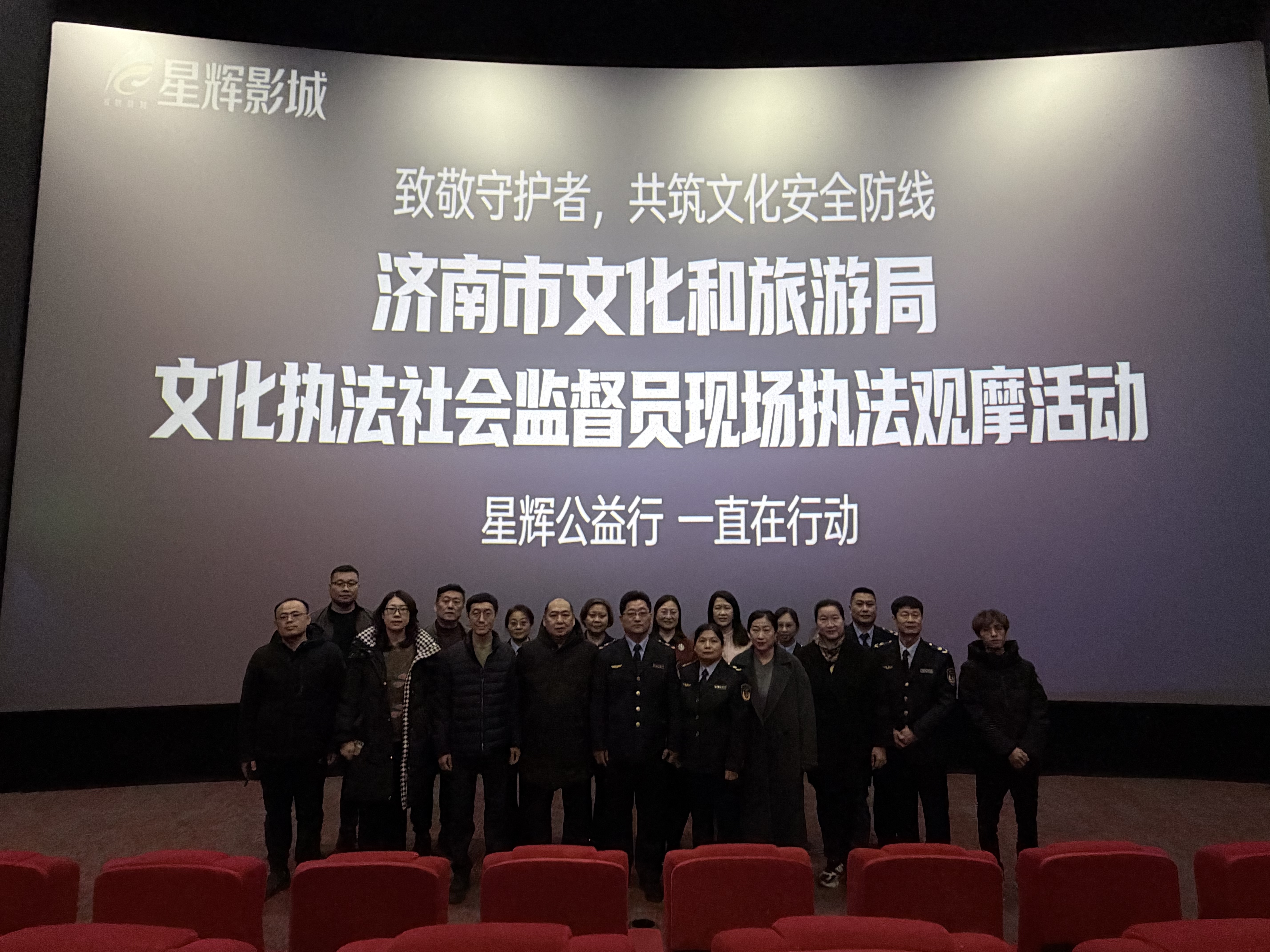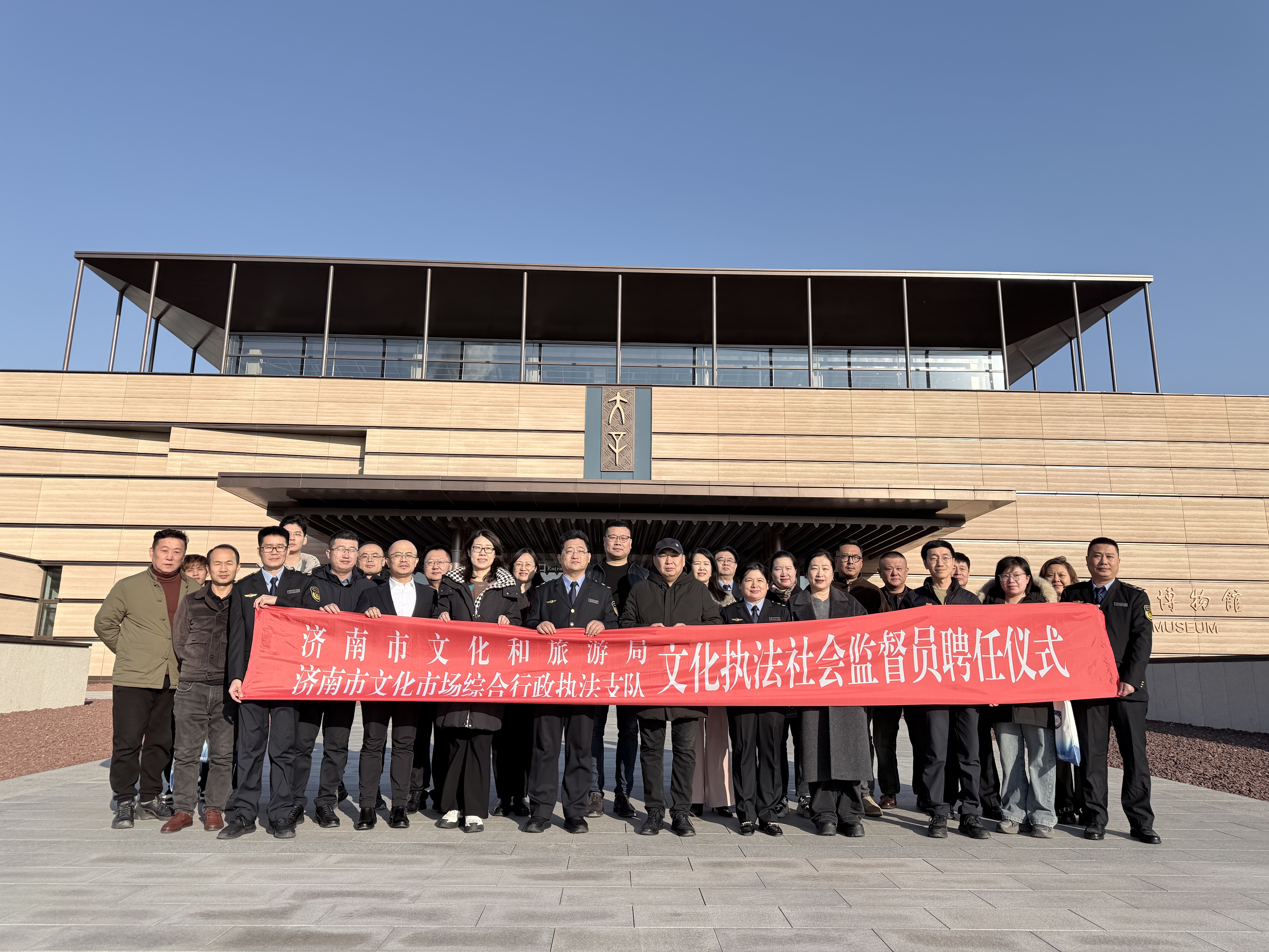 在聘任仪式上,市文化执法支队支队长王相强同志向与会人员介绍了济南市文化执法队伍建设及整体工作情况;执法人员也在现场通过讲解、演示的方式详细介绍了文物执法检查事项及日常监管重点,让社会监督员能够深入执法一线,深刻领会文化行政执法工作的内容和监管要求,有效促进了今后社会监督工作的开展。本次聘任活动,标志着济南市文化市场监督体系进一步完善,行政执法工作的透明度、规范化也将不断得到改进和提升。