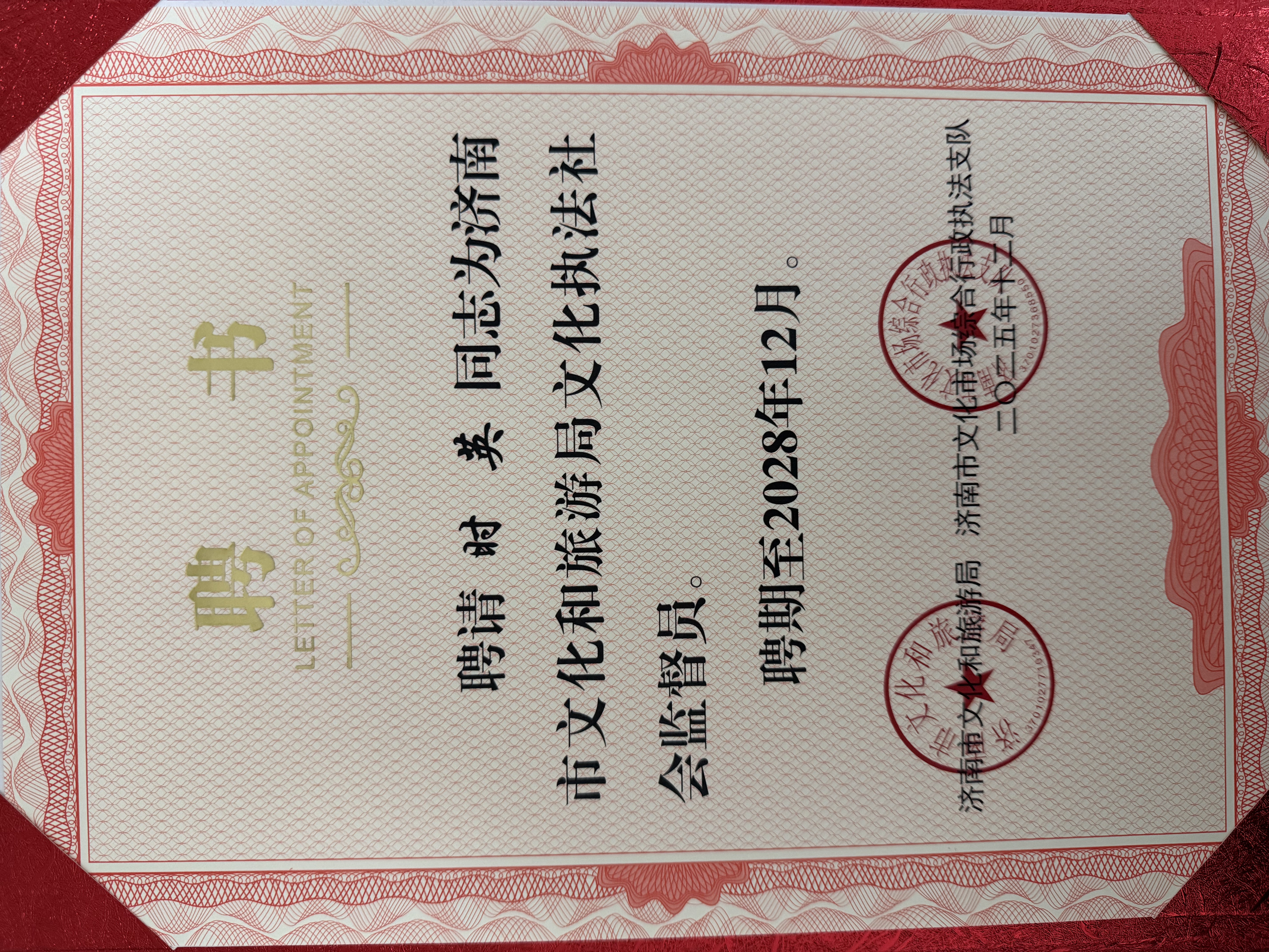 一纸聘书,一份荣誉同时也是一份责任。时英律师表示,在今后三年的聘期内,将充分运用专业法律知识,为济南市文化市场的执法工作提供专业建议、履行监督职责,为文化市场法治化建设贡献力量。
